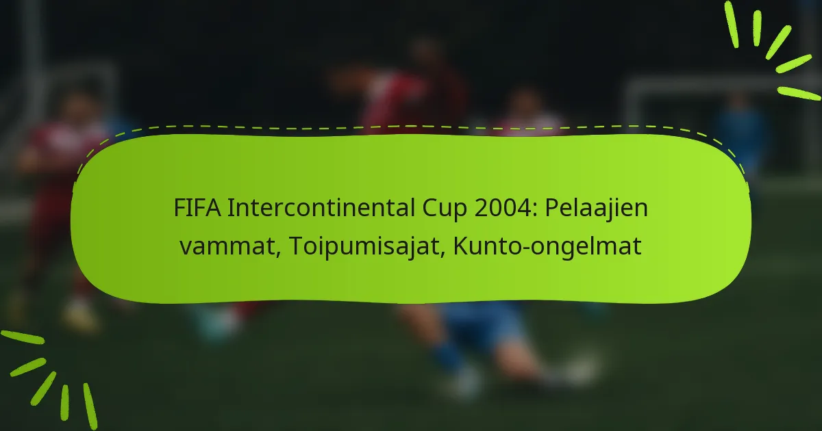 FIFA:n interkontinentaalisessa cupissa 2004 erilaiset kunto-ongelmat vaikuttivat merkittävästi pelaajiin, pääasiassa vammojen ja toipumishaasteiden vuoksi. Nämä tekijät vaikuttivat paitsi yksittäisiin suorituksiin myös laajemmin joukkueen dynamiikkaan ja lopputuloksiin.